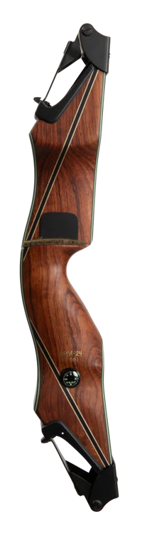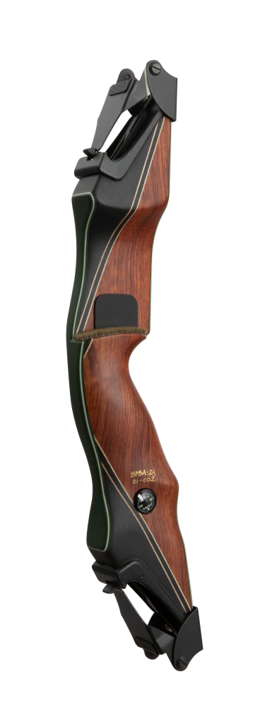 First introduced by Fred Bear more than 50 years ago, the Bear Take Down was a modern and innovative design that revolutionized the archery industry. Available in both an A and B length riser, this iconic bow features the signature 1969 heal horn style grip to allow for a deep feel and consistent grip. This Take Down is available in four timeless wood finishes: black maple with a phenolic black stripe, bubinga and phenolic with an inlaid phenolic black stripe, bubinga with green glass and a phenolic stripe, and bubinga with a phenolic front and sleek green glass