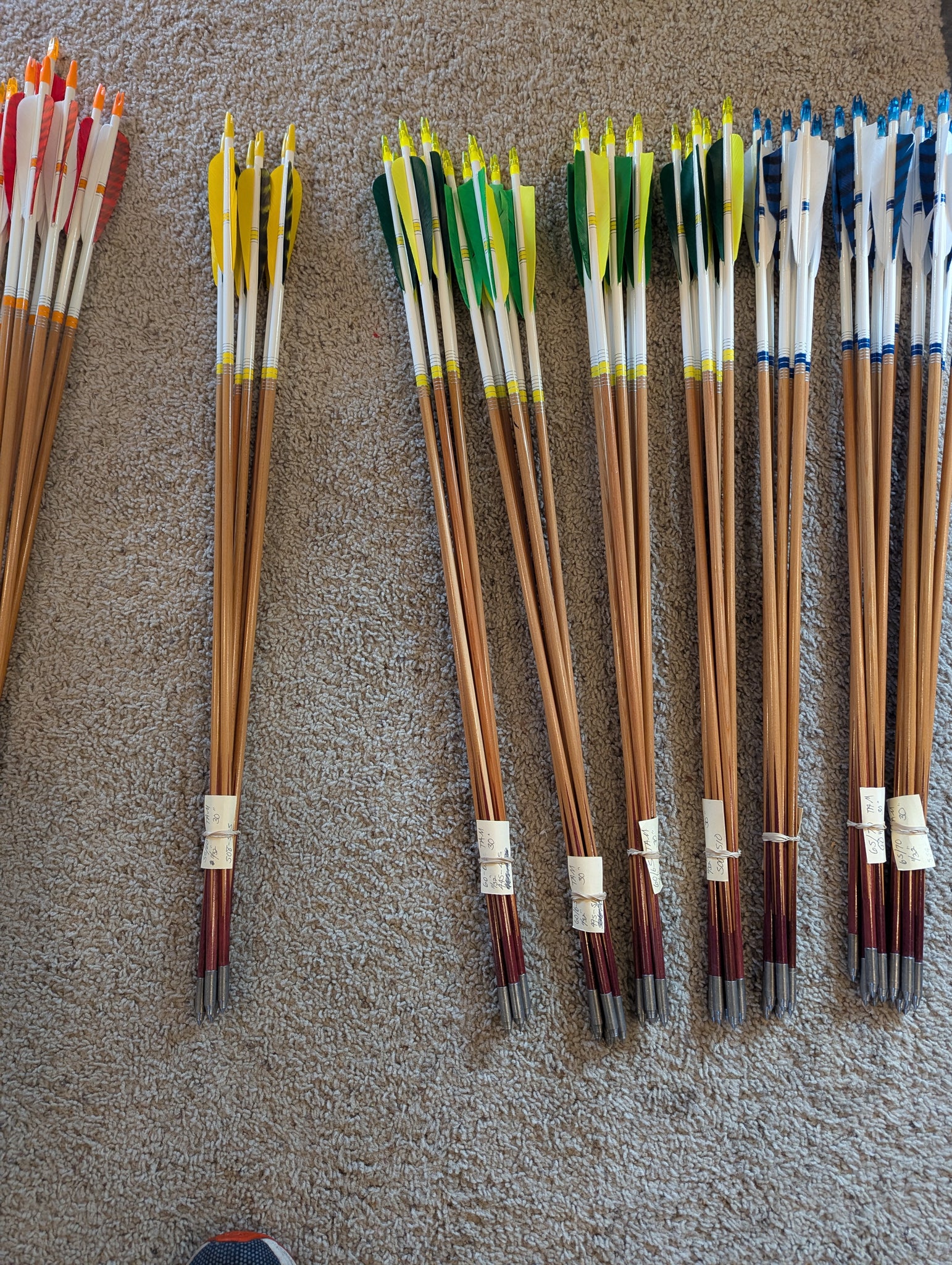 Rusty Watson of Rusty's Feet retired from making arrows shafts and we are trying to sell his remaining inventory for him we have both footed arrow shafts and completed footed arrows. We cannot get more of these once they are gone, so first come first served. We are hoping to sell these quickly to help Rusty out in retirement, so don't let the low price lead you to believe these are low quality arrows.